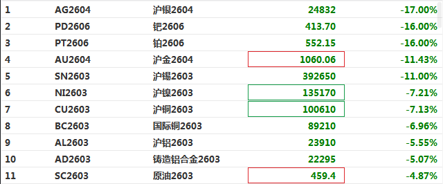 【中新经纬2月2日电】金银价格2日继续下跌。风声截图 国内贵金属期货普遍低开,沪银期货主力合约暂停,铂金、钯金逼近跌停,沪金跌幅近11%。截至发稿,上海白银、铂金、钯金仍跌破跌停,上海金跌11.43%。 Wind截图 目前,伦敦黄金下跌逾3.73%至4712.64美元/盎司,盘中一度跌至4600美元。伦敦银目前下跌 1.92%,至每盎司 83.618 美元。值得一提的是,1月30日,现货黄金价格一度下跌逾12%,至每盎司4682美元的低位。截至收盘,现货黄金下跌9.25%至每盎司4.880美元。现货白银一度暴跌 36% 以上,至每盎司 74.28 美元。截至收盘,现货白银下跌26.42%至85.259美元/盎司。中信的建设投资研究报告分析认为,近期国际贵金属价格大幅波动的原因有三方面。其中的关键将是任命一位超出市场温和预期的美联储主席。中信建投表示,美联储政策预期的变化首先导致美元升值。美国总统提名“鹰派”凯文·沃什担任美联储主席,其“缩表+降息”的政策走向超出了市场的“温和”预期,带动美元指数快速上涨。金属价格美元面值吸引力下降,直接压低价格。此外,市场对美联储3月降息的预期有所减弱,进一步加剧了短期负面情绪。二是短期获利了结,践踏杠杆资本。贵金属制品2026 年 1 月大米暴涨,黄金上涨超过 30%,白银上涨 60%,技术上进入明显超买区域(黄金 RSI 触及 40 年来新高)。早期入市的对冲基金获利需求强烈,叠加杠杆基金止损方案被触发,引发连锁抛售。第三,白银的投机性更强,波动性更大。白银具有金融和工业两种属性,这使得它的波动性更大。与此同时,太阳能、新能源汽车、人工智能数据中心等行业的需求猛增,库存降至十年来的最低水平。另一方面,价格上涨刺激了产业技术替代(以银替代铜),引发市场对需求可持续性的担忧,加剧价格冲击。同时,白银市场规模小于黄金市场,也不是传统的资本配置类型。对冲基金,尤其是杠杆基金不断上涨,进一步加剧了白银价格的波动。总体来看,近期贵金属市场波动可能加剧,建议投资者暂时采取观望态度。 新银万国期货研究报告称。一旦市场全面回调,今年黄金有望回归稳定上行轨道,但白银受工业需求和库存等因素影响,整体波动性可能高于黄金。 (经纬中新APP)