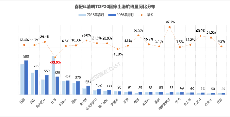 2026年第一个“黄金春节周”已经结束。今年清明假期(4月4日至6日)与四川、江苏、浙江、安徽等省中小学春节假期相结合,打造6天小长假,为民航市场创造新的增长空间。多平台数据显示,4月1日至4月6日,旅游热度大幅上升,境外旅游也有所增加。 “人富而不富” 与往年不同,值得注意的是,今年清明假期期间,商业航空出行出现了“量价齐升”的情况。春假促进了商业航空旅行。据飞行管家最新统计,2026年春假及清明节(4月1-6日)商业航空旅客量达1209万人次,比上年增长5.3%。从每日趋势来看,前三天的出行量包括首日上涨13.7%,明显高于过去同期。虽然清明节出游人数较去年同期略有减少,但结合春假影响,假期期间出游总人数好于同期。这意味着春假政策的实施打破了民航市场“春节后、五一前”的传统淡季格局,需求端出现了复苏。同时,“小长假”时长增至6天,加大出行半径。也就是说,往年清明节假期只有三天,所以大部分游客主要是去异地旅游,但今年第一波春假的游客能够去更远的地方。去哪儿网数据显示,4月1日至6日,浦东乘飞机出行的旅客人数热门城市增幅明显,出行半径800公里以上的旅客量增长30%以上。其中,春假城市旅游景点高度集中,也是热门目的地。全国出发机票增幅最高的20个城市中,一半以上是春假城市。例如,攀枝花始发航班数量增长超过1.2倍,黄山始发航班增长80%,西昌始发航班增长72%。假期时间更长的航班也推动了国际旅行,其中飞往东南亚的航班在国际旅行目的地中所占比例最大。韩国在最受欢迎的目的地中排名第一,泰国、马来西亚、俄罗斯和哈萨克斯坦位居航班最多的目的地之首。飞往日本途中,飞往柬埔寨的航班较上年减少50%以上,飞往柬埔寨的航班较上年减少10.3%。为什么利率比去年高?据空乘人员监测,2026年春假、清明期间国内航空公司经济舱平均票价达到775元,2025年同比增长13.9%,疫情前的2019年增长5.2%。这算是打破了近年来节假日“生意忙而不旺”的尴尬格局。疫情过后的国庆、春节假期,商业航空出行呈现“量增价降”的趋势。今年春假、清明节期间的“量上加价”主要是出行半径的拉长,而4月5日起,特种燃油附加费也大幅上涨。与此同时,游客年轻化、高素质化趋势明显。据库纳尔旅游数据显示,新4月1日至6日,13岁至18岁的旅客数量增长了70%,12岁及以下的旅客数量增长了45%,均领先于所有年龄段的增长速度。东城平台上,国内民航18岁以下旅客数量也同比增长47%。中国民航局优先“规范航空运输市场价格监管”,这将对今年的机票价格产生一定影响。在2026年民航业务会议上,民航局局长宣布,2026年将研究制定旅客运输成本调查办法,考虑建立预警和票价监测互联机制,调整加强对销售网络平台的监管。值得注意的是,今年,甚至春节过后,多条航线票价“下跌”立刻,不含税最低价没有降到200元以下。预计今年票价将止跌企稳。这一趋势预计将在第二季度持续。这是因为,除了与清明节假期挂钩外,全省其他地区,如杭州、宁波、嘉兴等,实行连续五一假期模式,部分地区实行分段假期模式。库纳尔大数据研究院研究员杨瀚表示,春假有望成为春节后五一前文化旅游市场的新动力。据我市旅游平台观察数据显示,清明节的火爆产生了“多米诺骨牌效应”。清明期间五一假期(截至4月30日)截至5月4日,旅游产品搜索热度环比增长320%以上。南航市场部负责人伊内斯告诉记者:“今年很多地区中小学春假恰逢清明节,导致假期长达6-9天,显然需求极高,中长途旅行、家庭旅行的订单率较淡季增长了30%以上。”此外,从4月开始,全国进入体育赛事和大型演唱会密集期,超越城市看比赛、追明星的奇观经济成为二季度民航需求新常态。在近日召开的南航业绩沟通会上,南航总经理韩文胜预计,2026年运价水平将止跌企稳。“目前,国内市场行业普遍亏损,这种局面不可持续。今年,我们将率先反制。”推动行业融合,提高国内航班运营水平。”(易在财经)